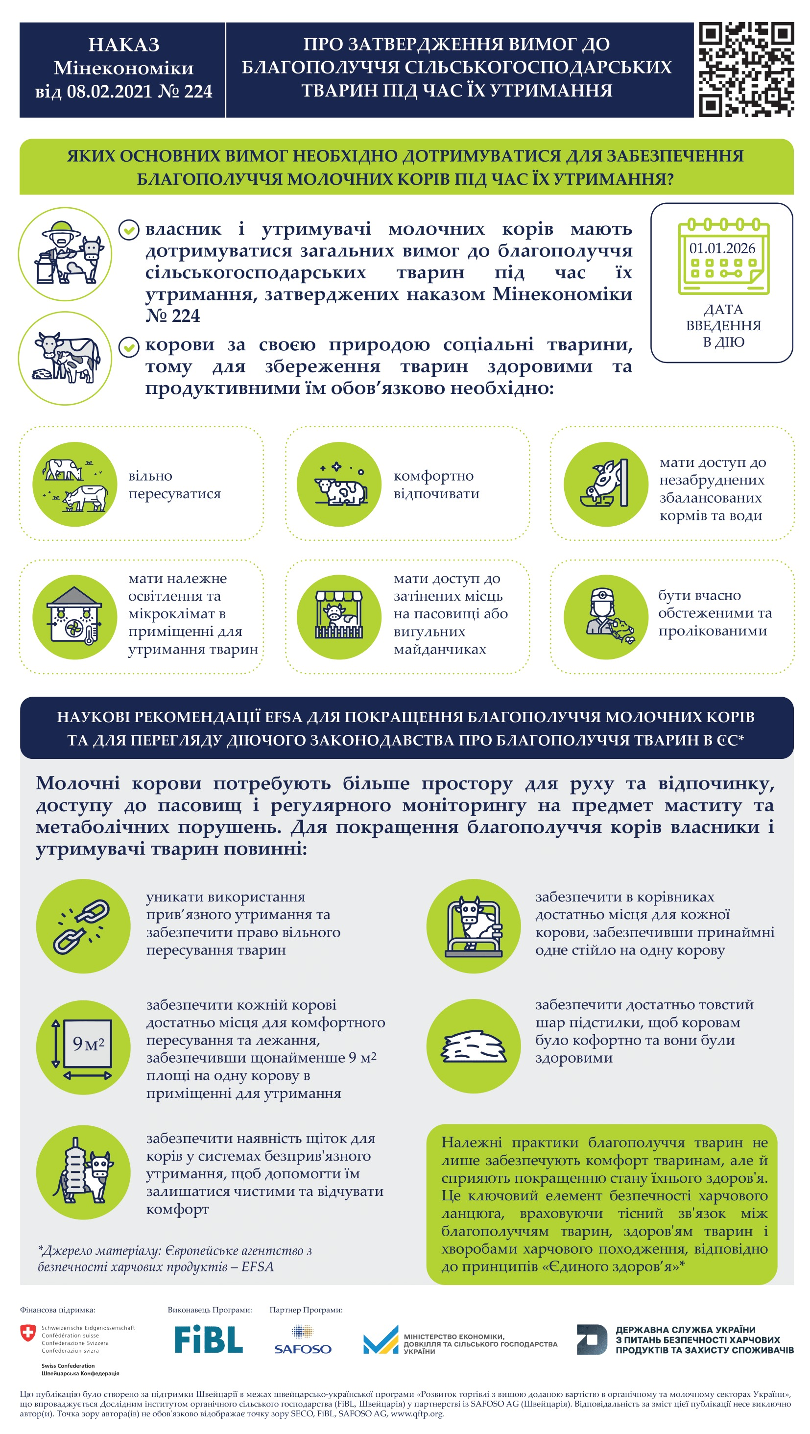 наказ Міністерства розвитку економіки, торгівлі та сільського господарства України від 08.02.2021 № 224 "Про затвердження Вимог до благополуччя сільськогосподарських тварин під час їх утримання"