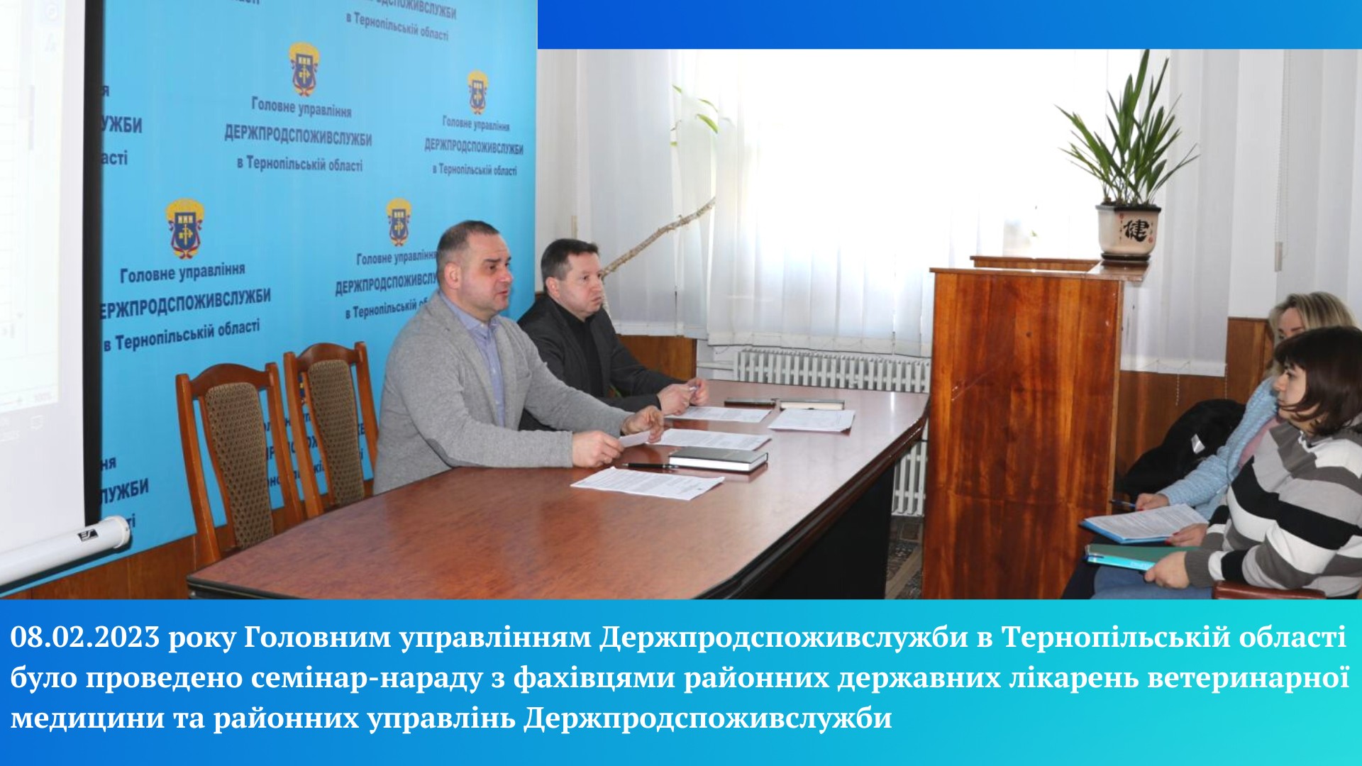 08.02.2023 року Головним управлінням Держпродспоживслужби в Тернопільській області було проведено семінар-нараду з фахівцями районних державних лікарень ветеринарної медицини та районних управлінь Держпродспоживслужби області щодо епізоотичної ситуації, підсумків протиепізоотичної роботи в області за 2022 рік, перспективи і прогнозування на 2023 рік.