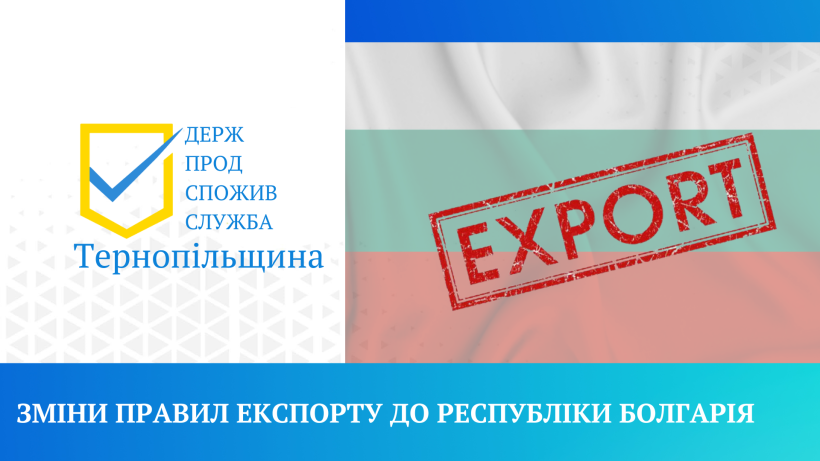 Головне управління Держпродспоживслужби в Тернопільській області (далі – Головне управління) повідомляє, у зв’язку з погодженням між Держпродспоживслужбою та Болгарським агентством безпеки харчових продуктів Міністерства сільського господарства, продовольства та лісового господарства Республіки Болгарія «Процедури для транзиту територією Республіки Болгарія неавторизованих вантажів, походженням з України і призначених для третіх країн, інформуємо, що оператор ринку, які мають намір експортувати живу рибу, інкубаційні яйця та продукти тваринного походження (м'ясо ВРХ, овець, кіз) з України до третіх країн транзитом територією республіки Болгарія, зобов’язані подати до Головного управління заяву у довільній формі щодо транзиту через територію Болгарії, яка повинна містити наступну інформацію: